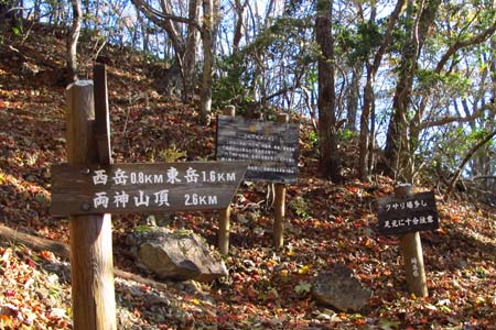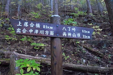 両神山分岐点 (八丁峠は左側へ10bほど進む) |