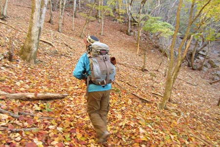 落ち葉が多く地図とナビを頼りに進む | 紅葉撮影中のMIZUOさん | |||