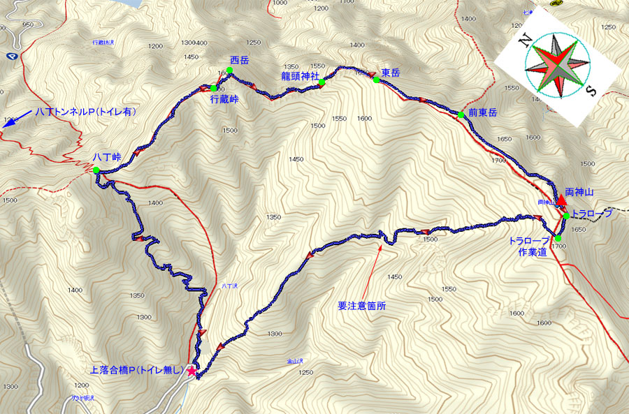 両神山・上落合橋馬蹄形R登山MAP![]() |