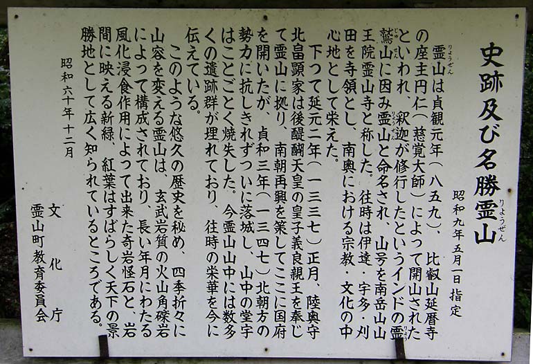 国の史跡名勝に指定されている霊山県立自然公園は、平安初期(859年)、慈覚大師により