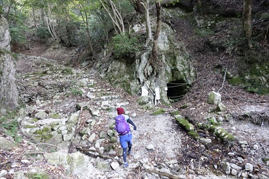 金山&遠足尾根Rと比較したら裏道かもしれないが登山道は明瞭/右側に蛍石採掘抗跡 |