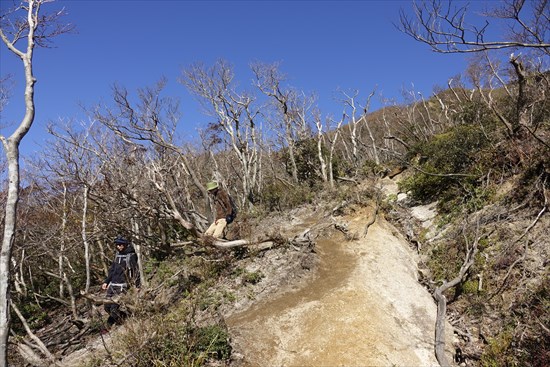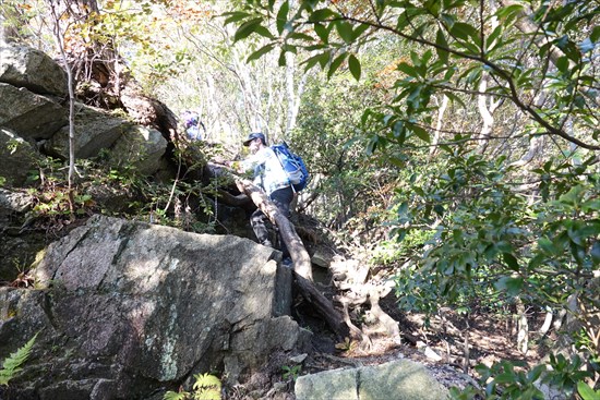 今回はご覧のような大木が道を塞いでいたので指導標を見落としても直進はしないですね(笑) |