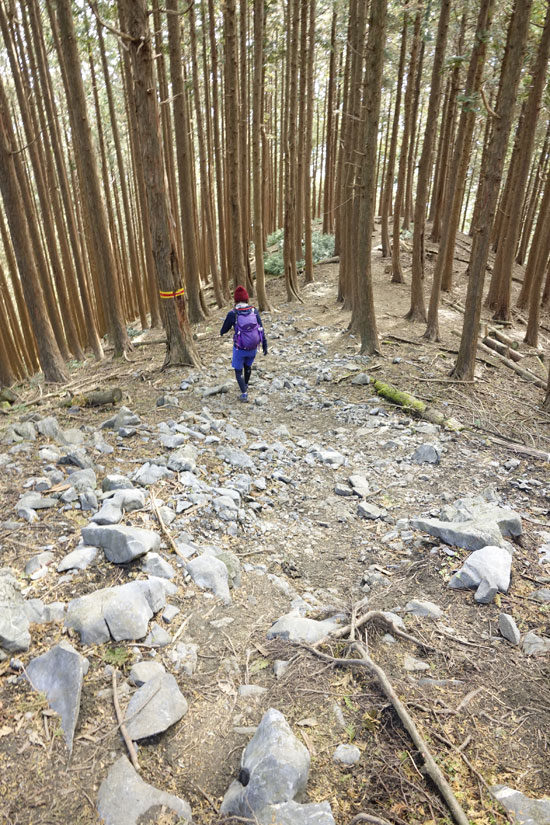 遠足尾根とは名ばかりの激下りで、前回間違えた大日向尾根のほうがズッと歩きやすかったですよ〜(笑) |