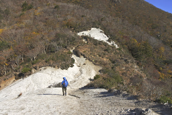 100bほどだが激下りのうえ足場が悪いので慎重に |