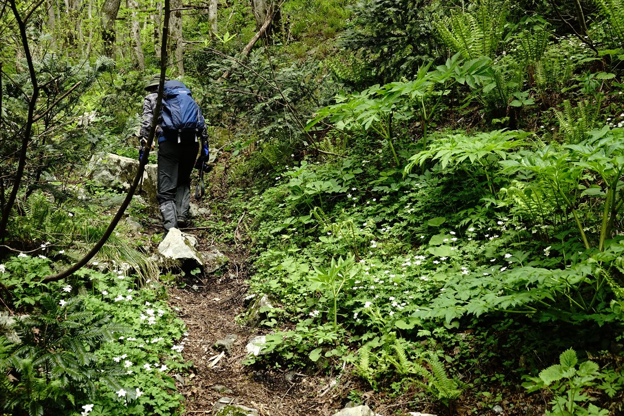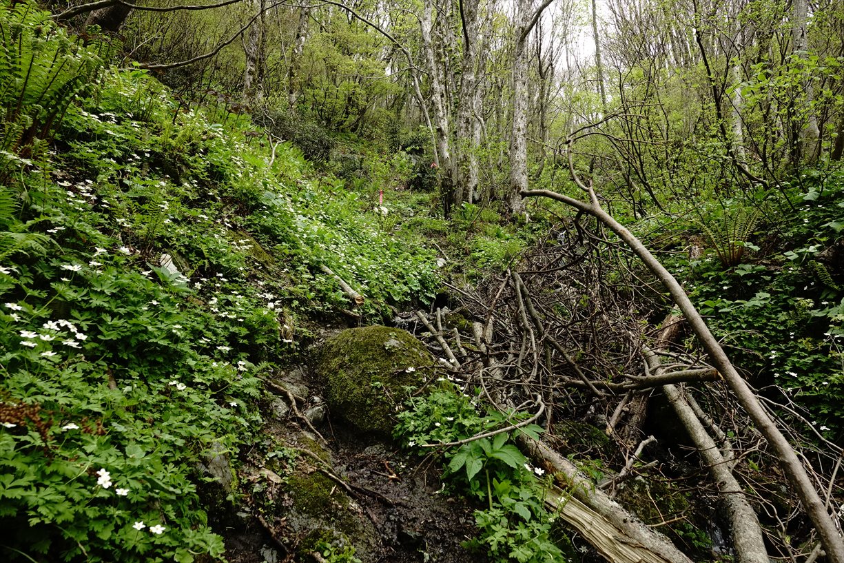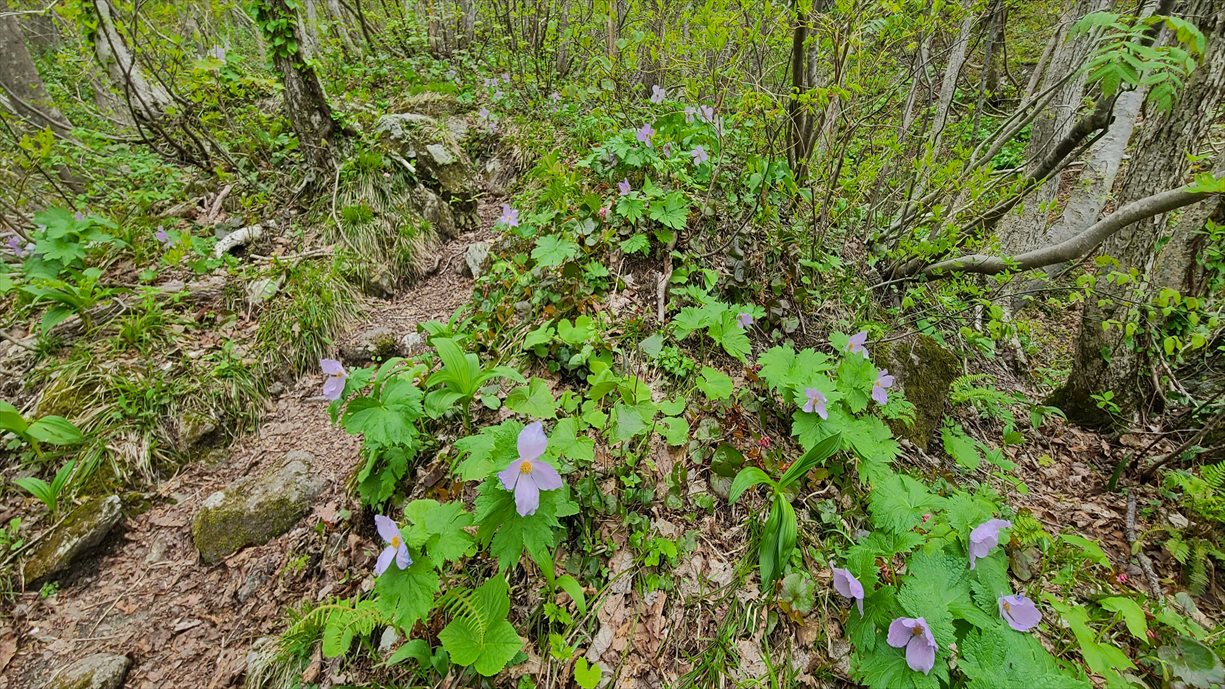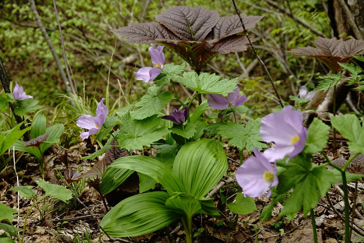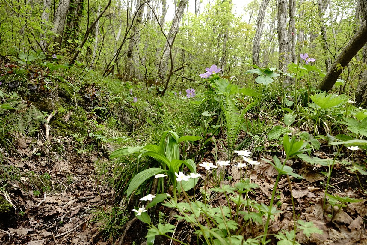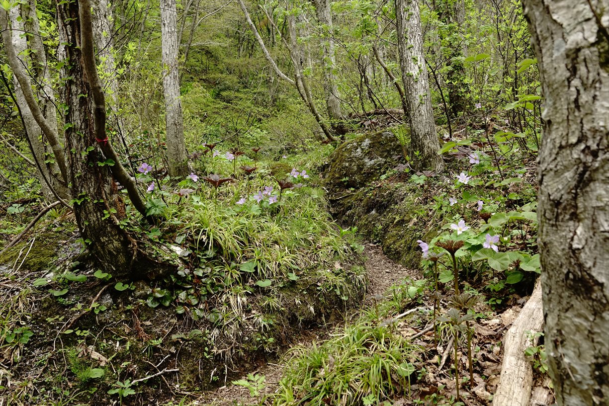 この辺からシラネアオイとニリンソウの競演が始まる♪ | ||||