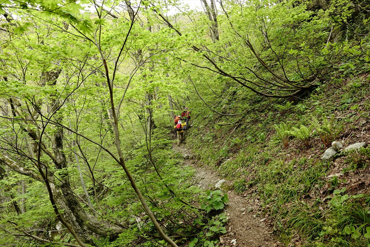 狭い登山道で抜くことができないため まずは間隔! 間隔! | ||||