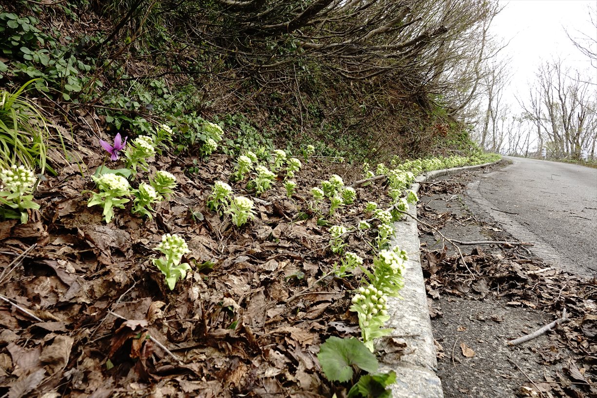 縦貫道法面で咲く雪割草(オオミスミソウ) | ||||
