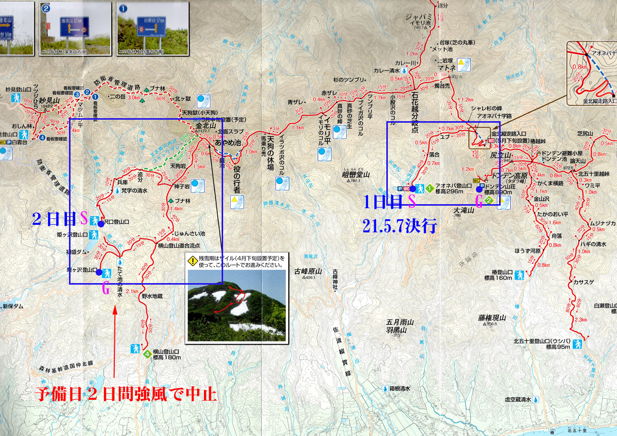 二日目は沢口登山口~金北山~栗ヶ沢登山口ルートで歩く予定だったが次回の楽しみに・・・ | ||||
