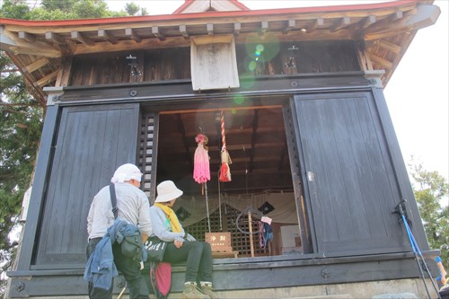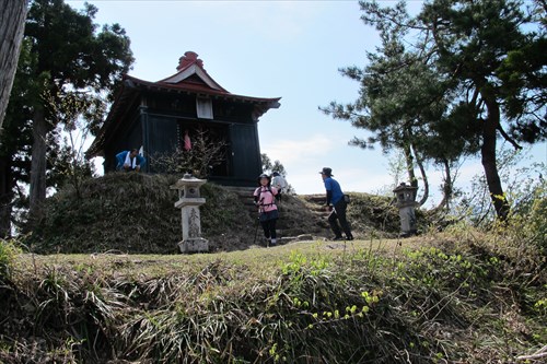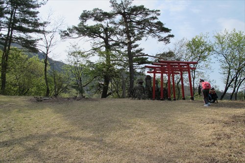 石仏が等間隔に置かれた桜並木 | 鳥居&四等三角点 | |||
