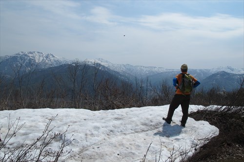大城へ | 残雪の登山道から八海山を望む | |||