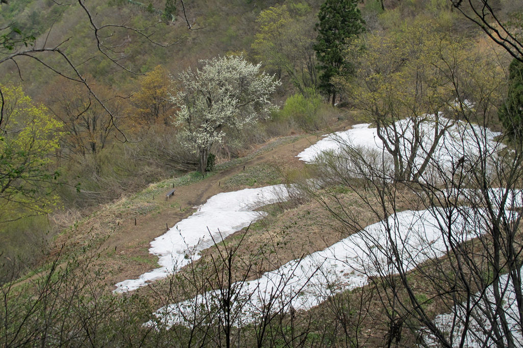 城坂遊歩道へ | 残雪の登山道 | |||