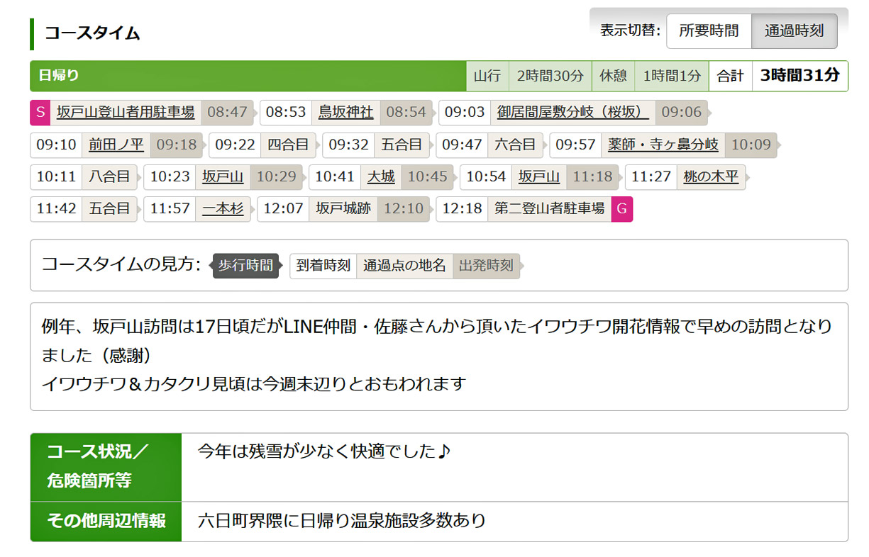 《坂戸山コースタイム他》