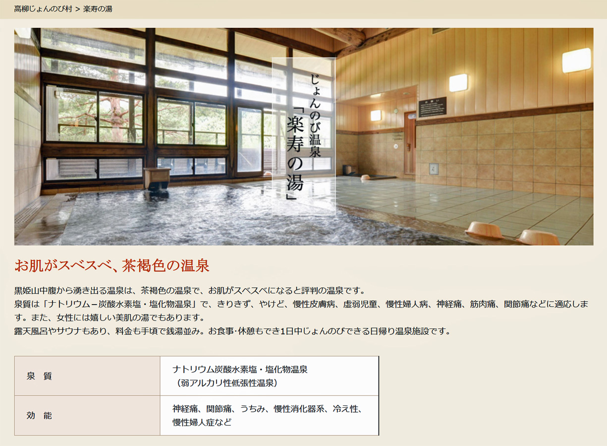 道の駅「越後高柳じょんのび村」楽寿の湯 |