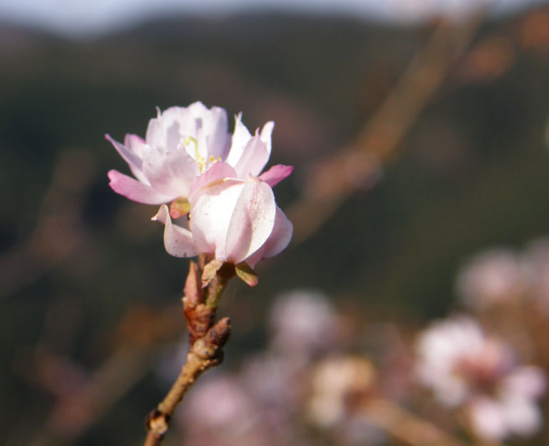 蝋梅(2月)見学で訪れた時に冬桜のなごり花があちらこちらで咲いているを見て 今回の訪問とあいなりました。 |