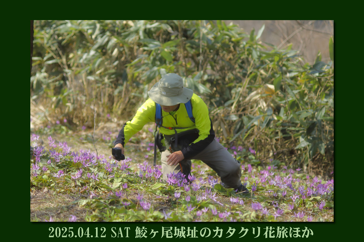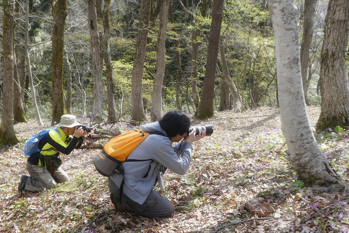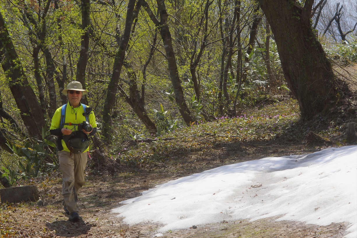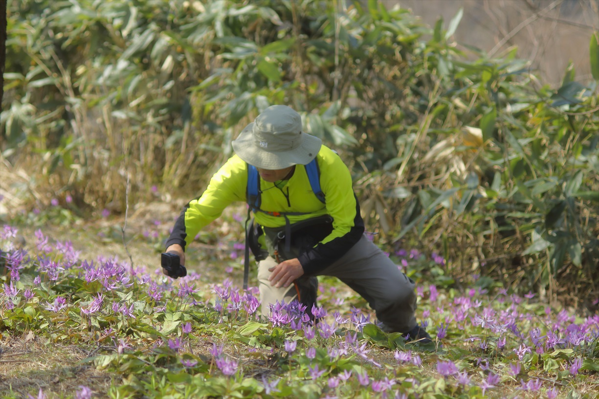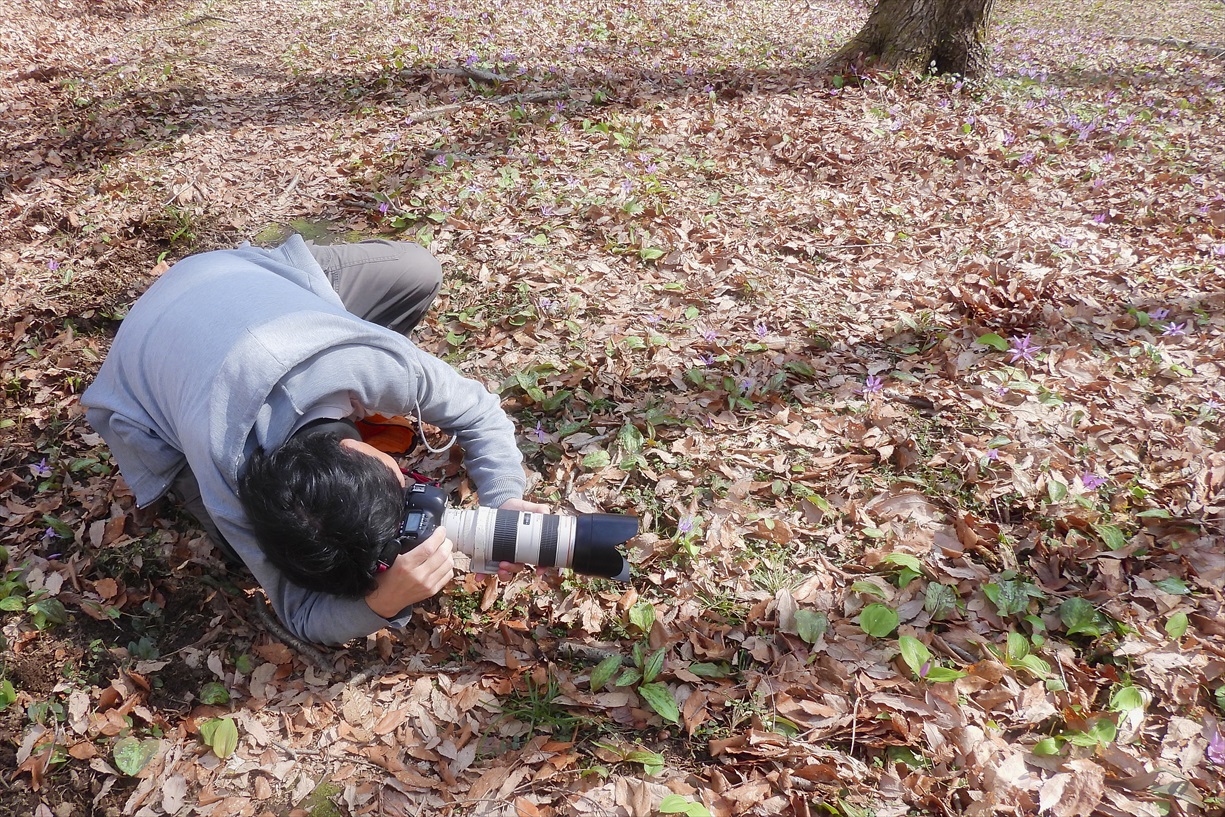 カタクリを踏まないよう気をつけて撮影中の管理人 | ||||