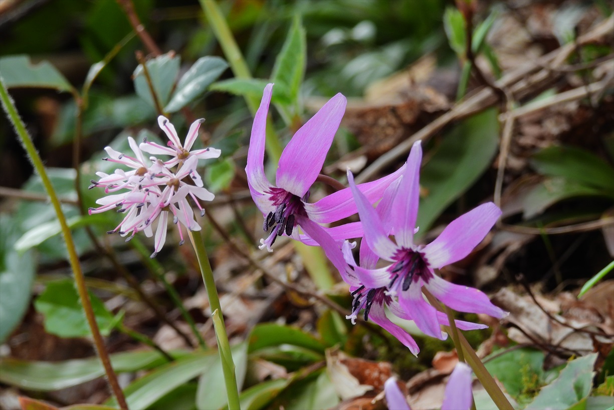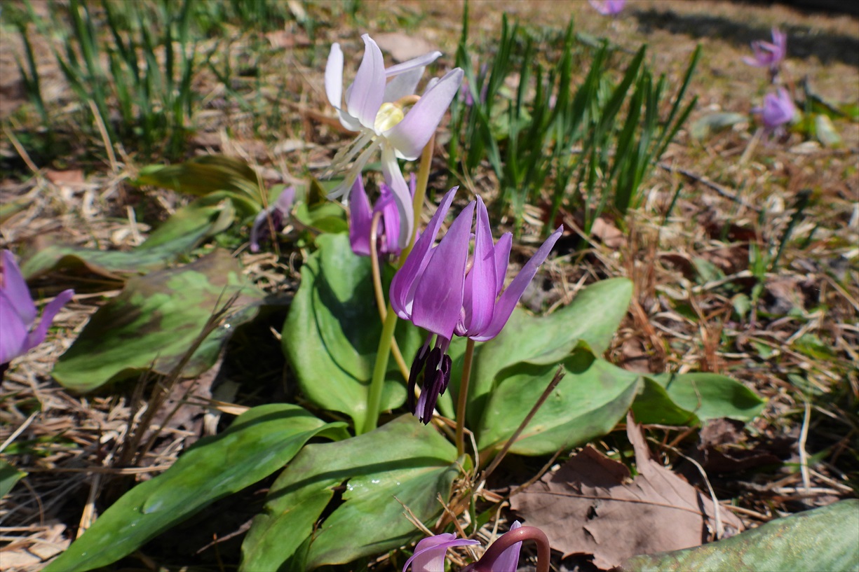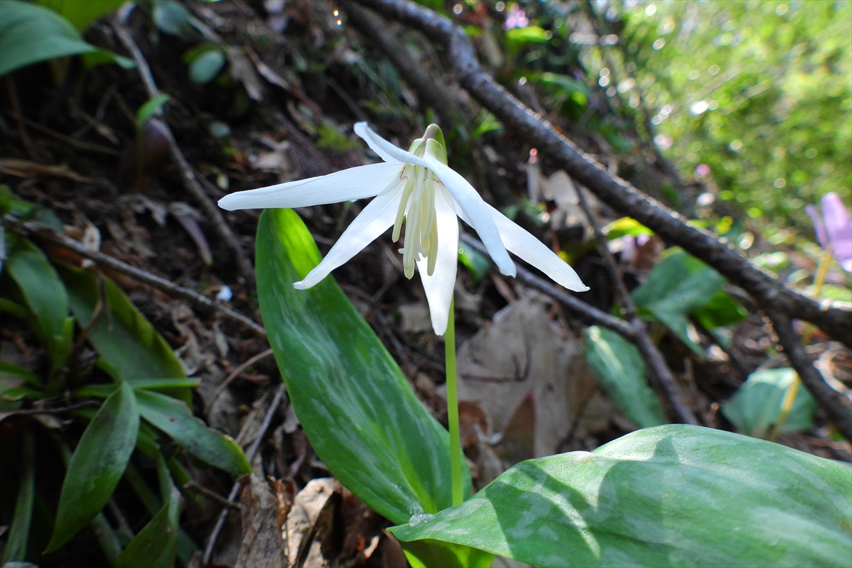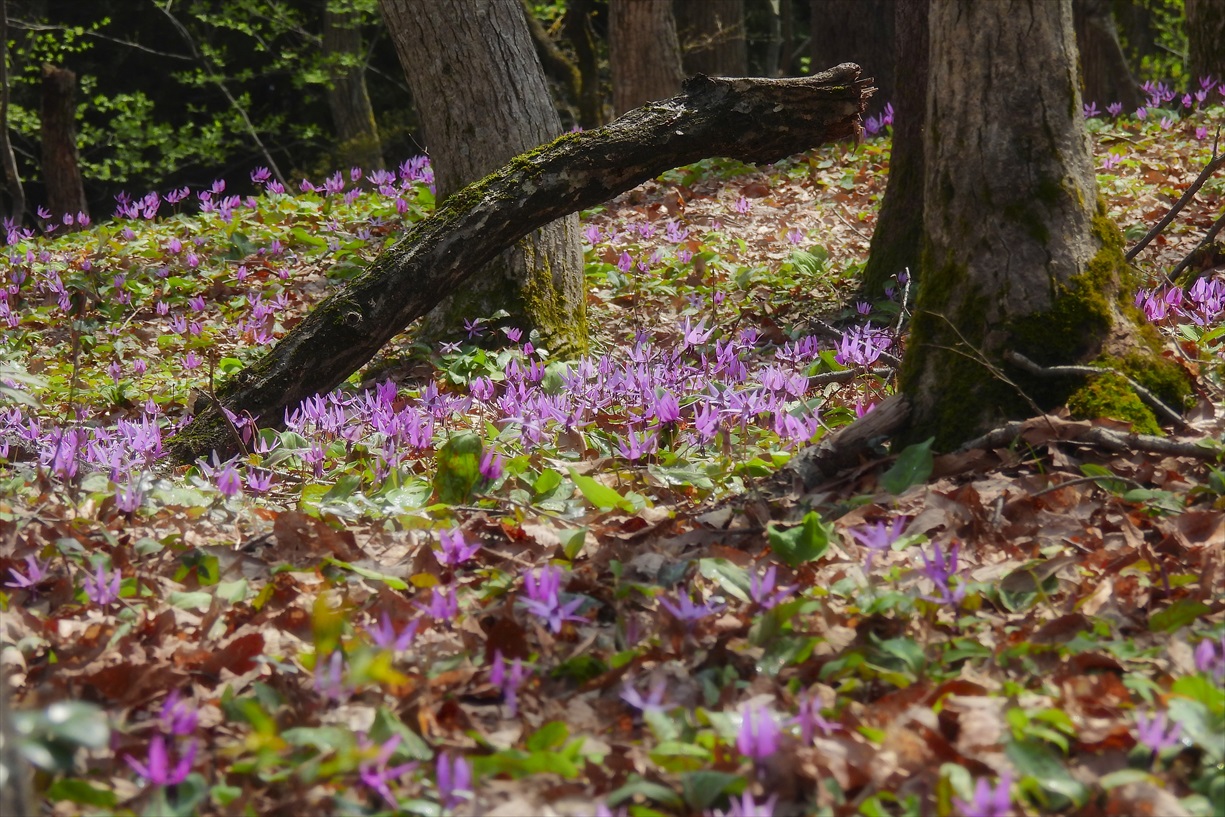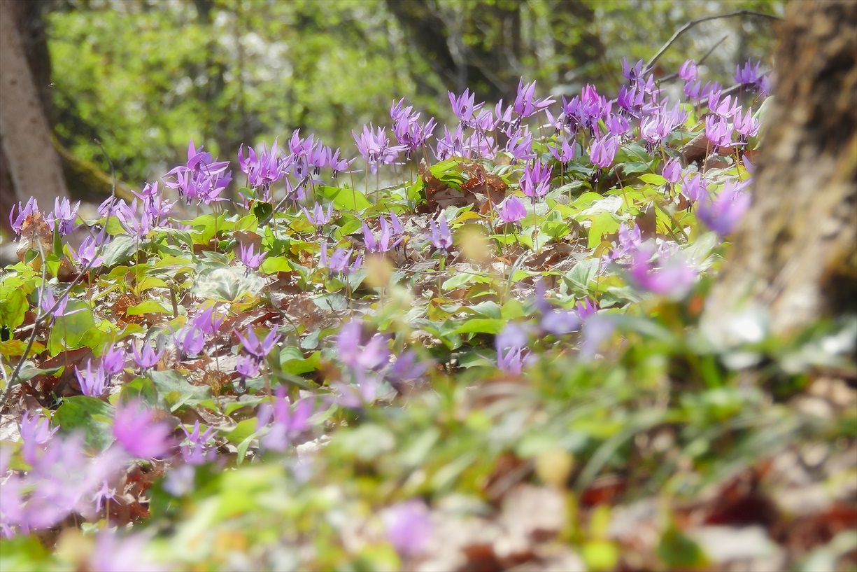 カタクリを踏まないよう気をつけて撮影中の管理人 | ||||