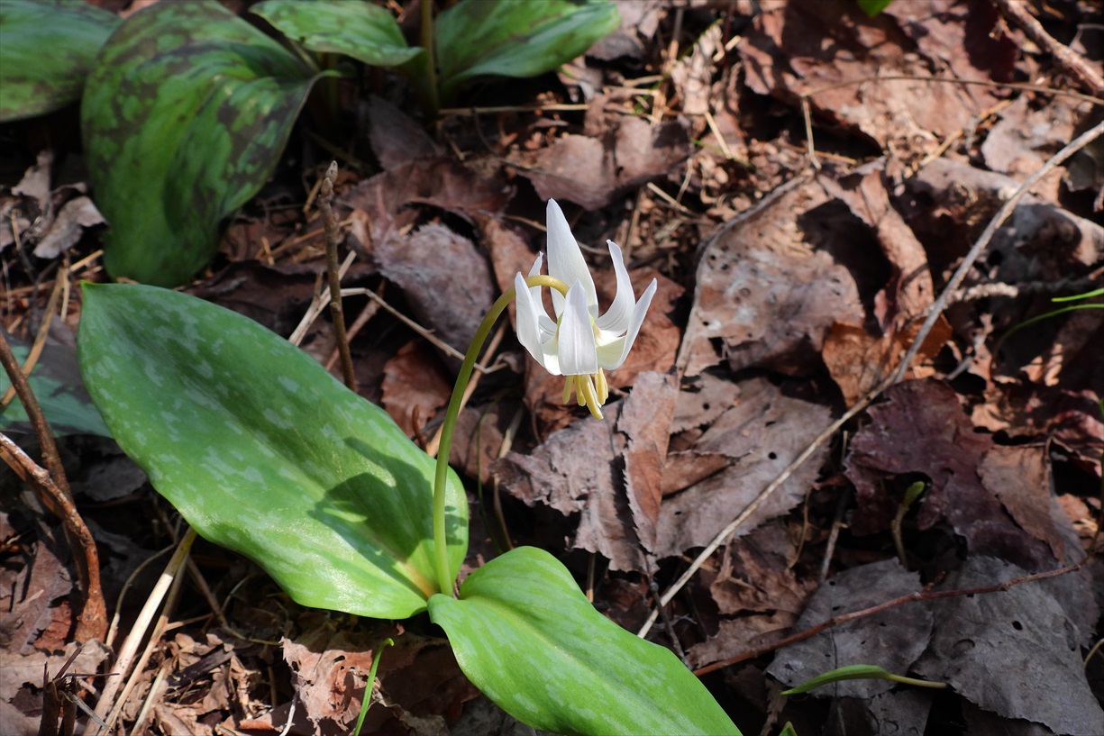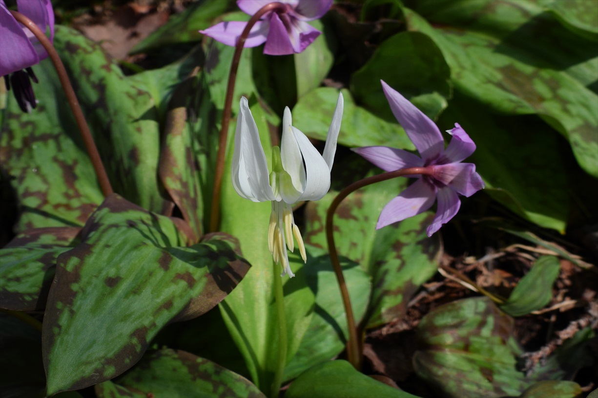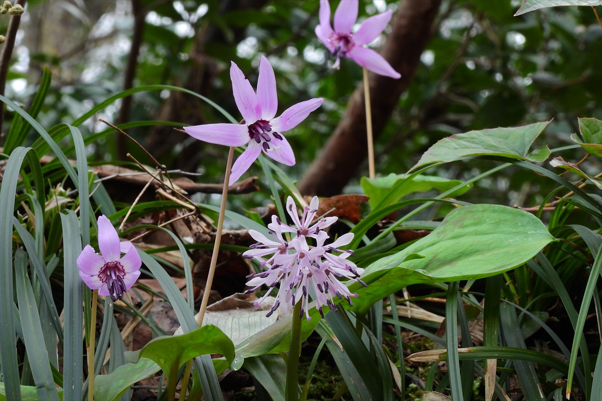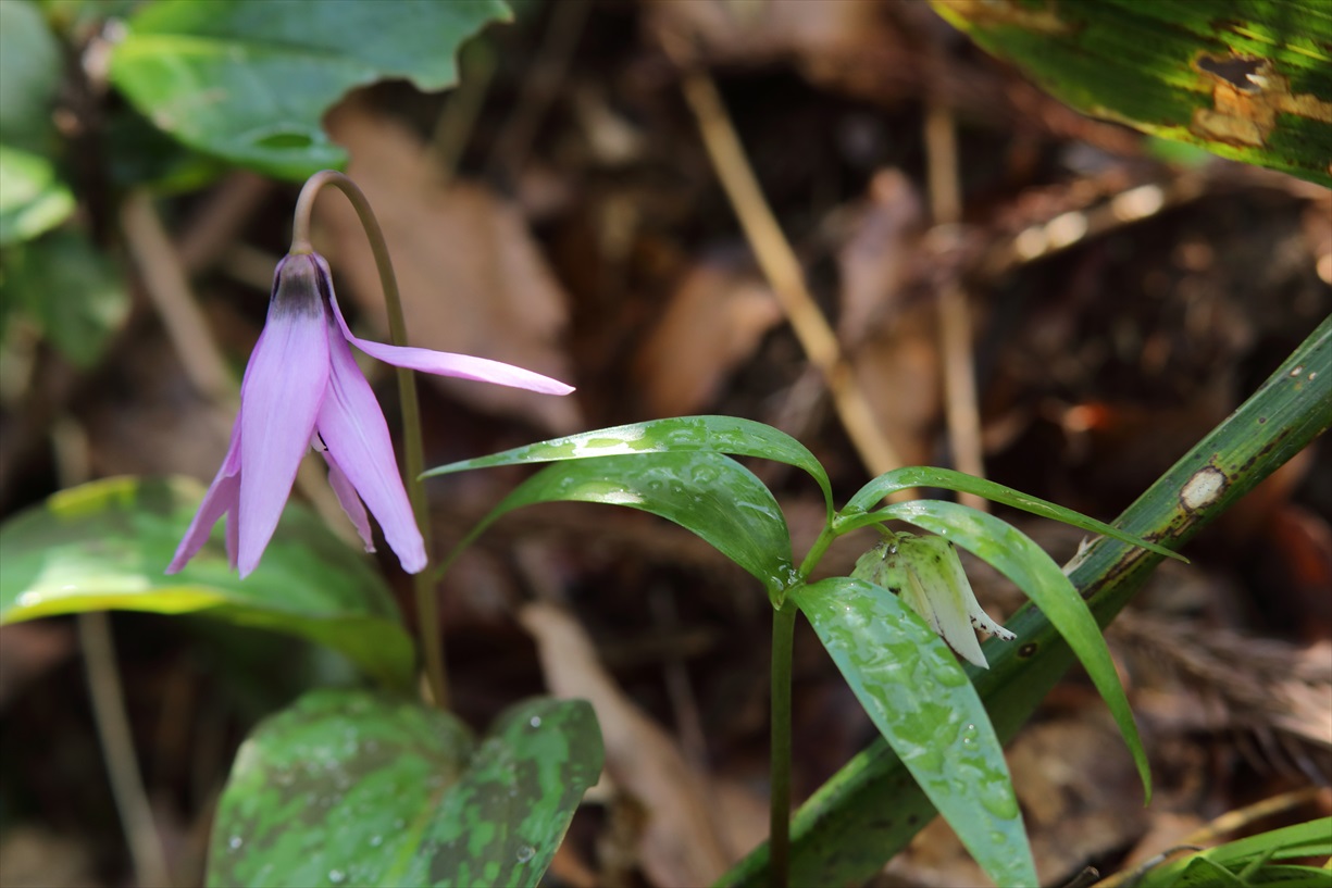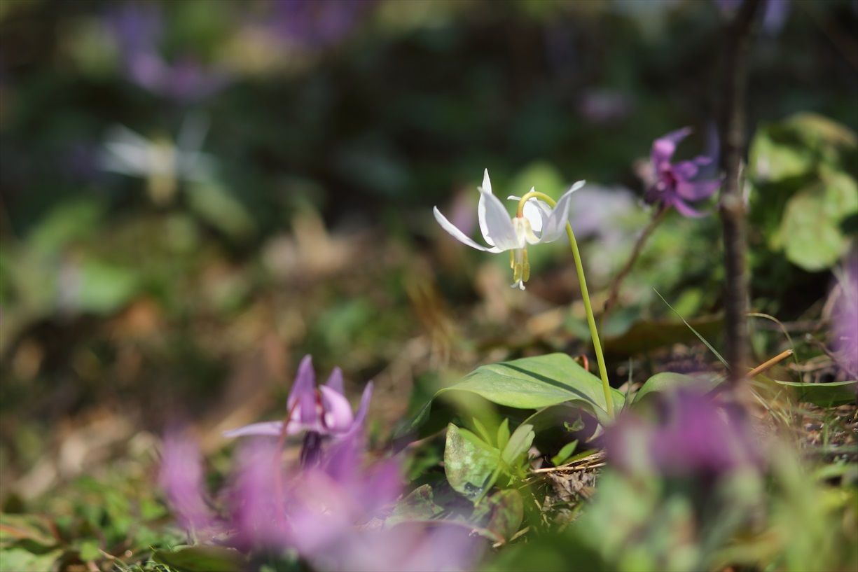 カタクリを踏まないよう気をつけて撮影中の管理人 | ||||