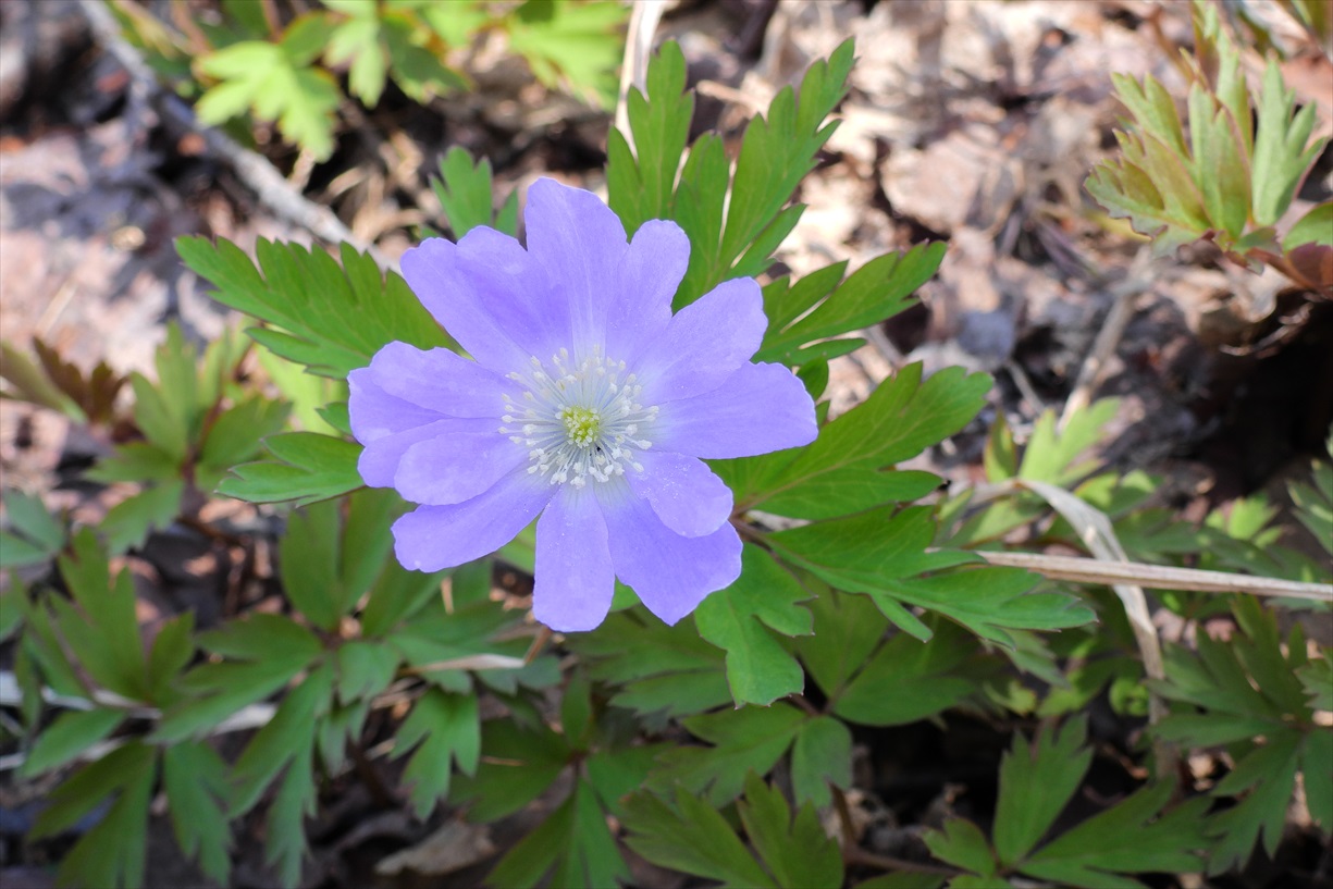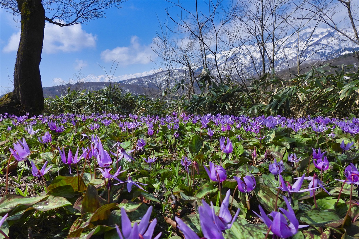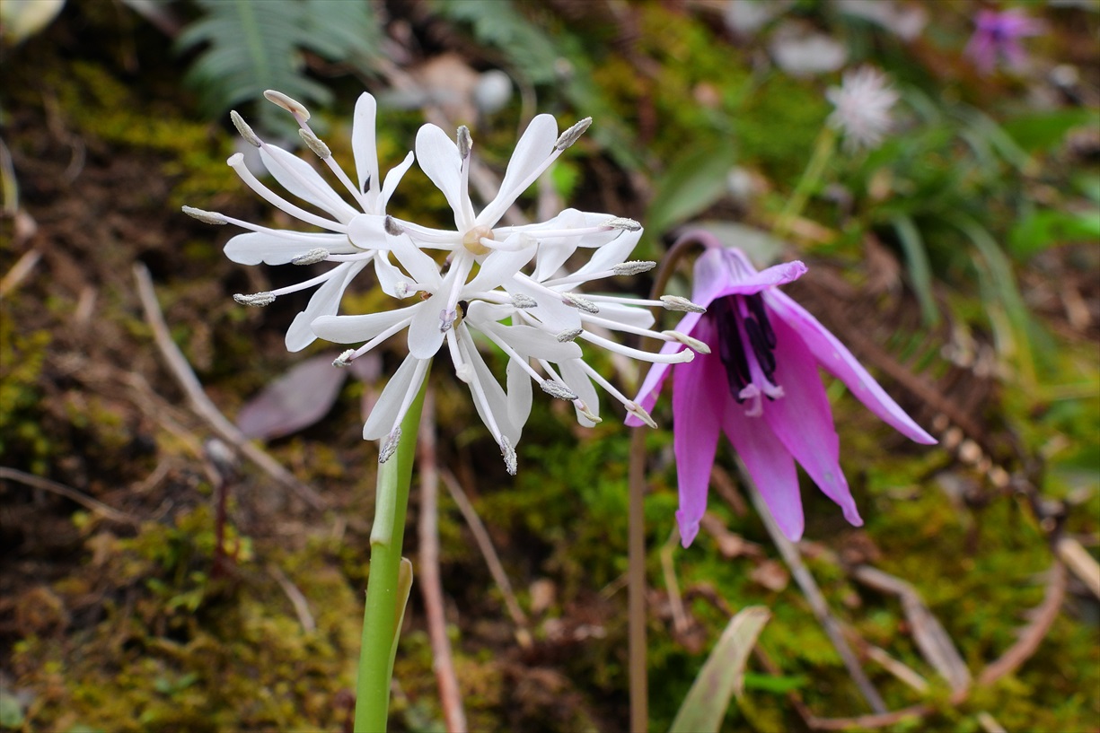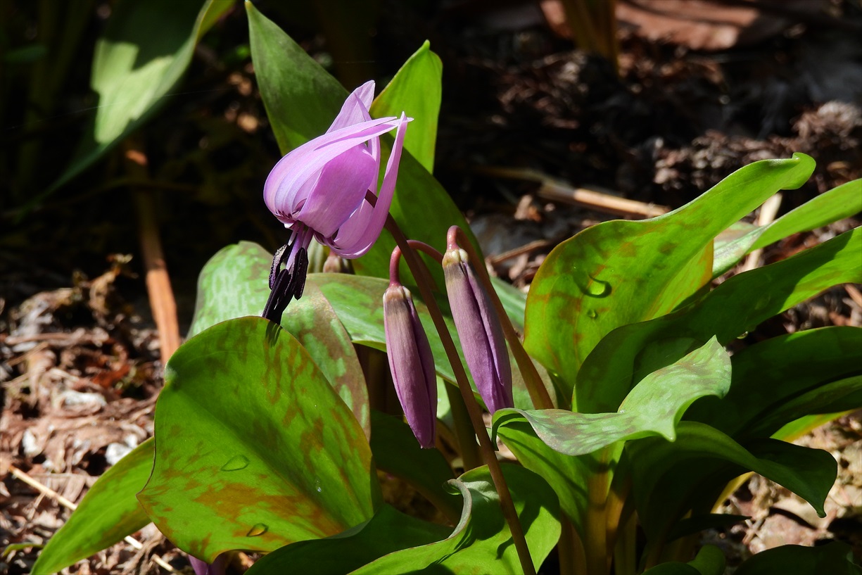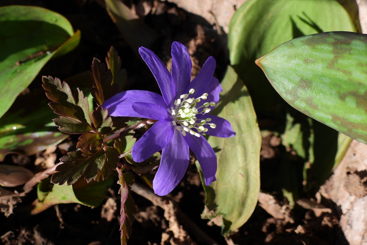 カタクリを踏まないよう気をつけて撮影中の管理人 | ||||