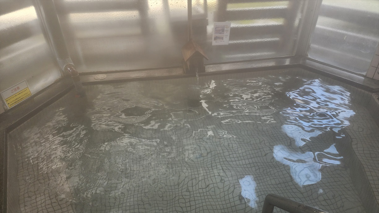天然温泉「関川共同浴場・大湯」 温泉は妙高山の麓から10kmもの距離を地中に埋めたパイプで引いてきているとのこと |