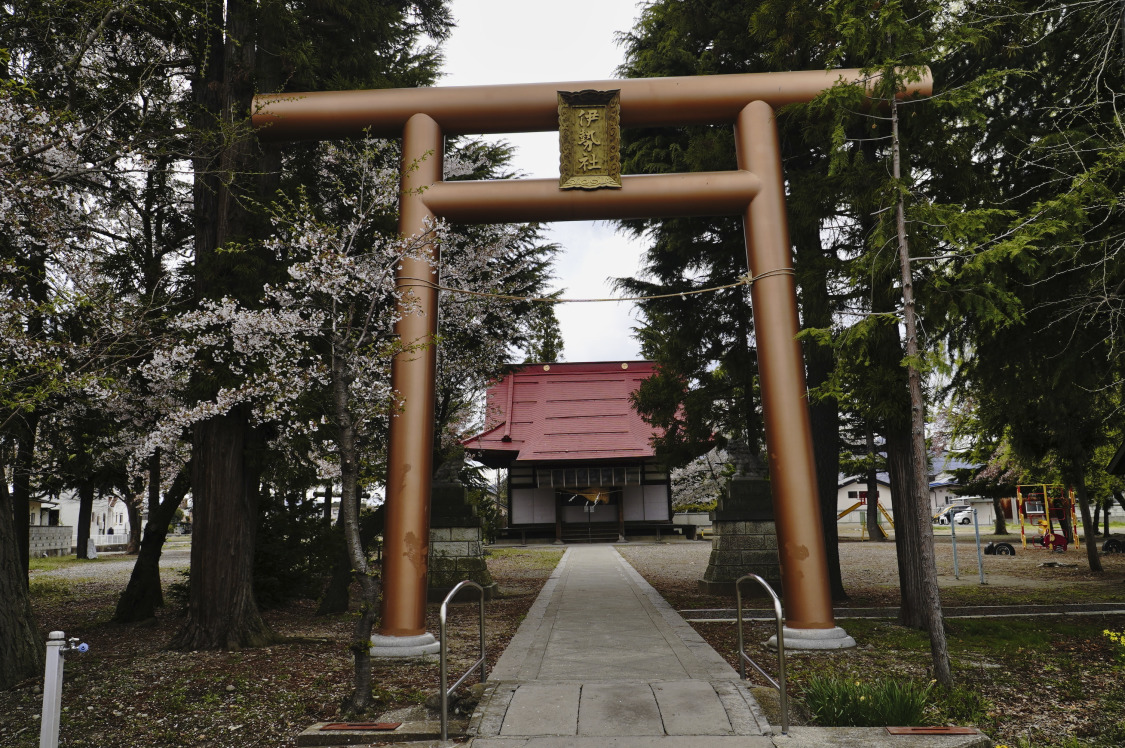 三角点MAP3番/伊勢社 友達から聞いていた珍しい色の鳥居(当時見せてもらった写真はもっと金色だったような)が建つ神社 |