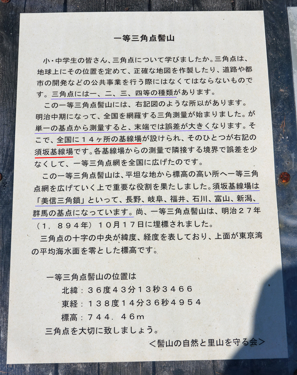 三角点&須坂基線場の説明板(髻山山頂にて) | ||||