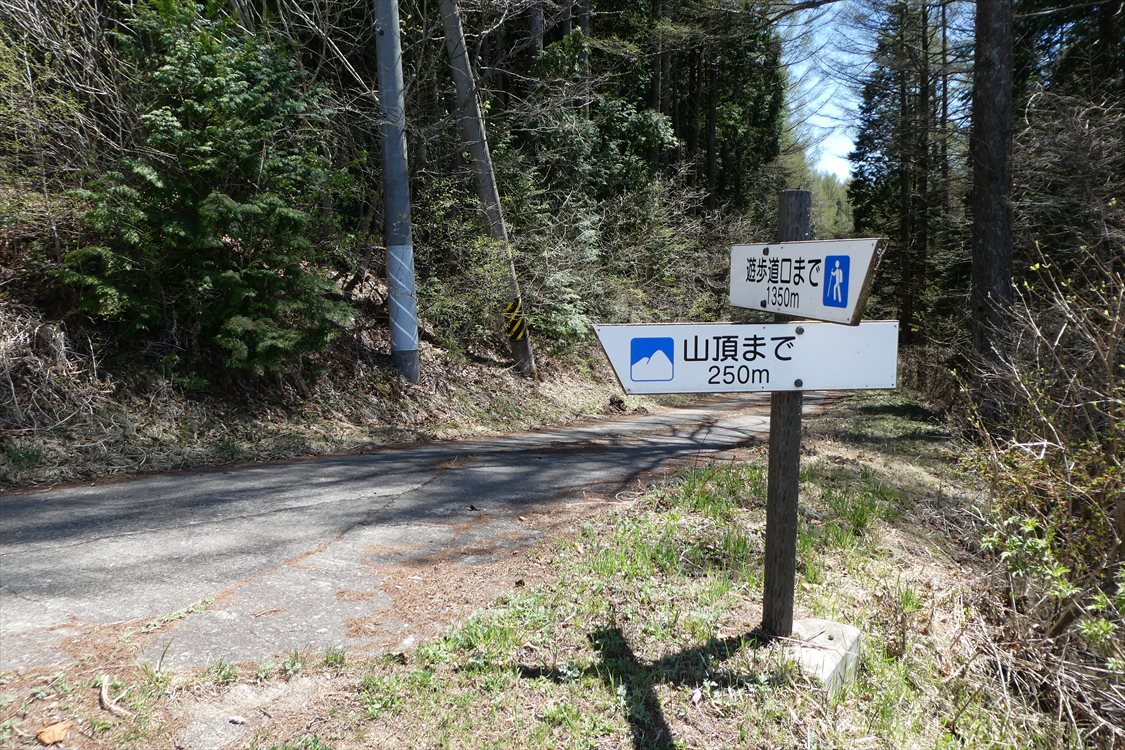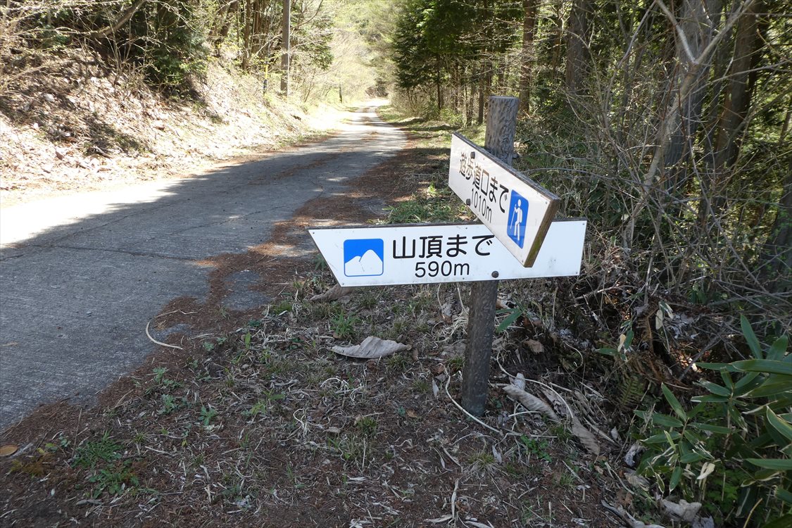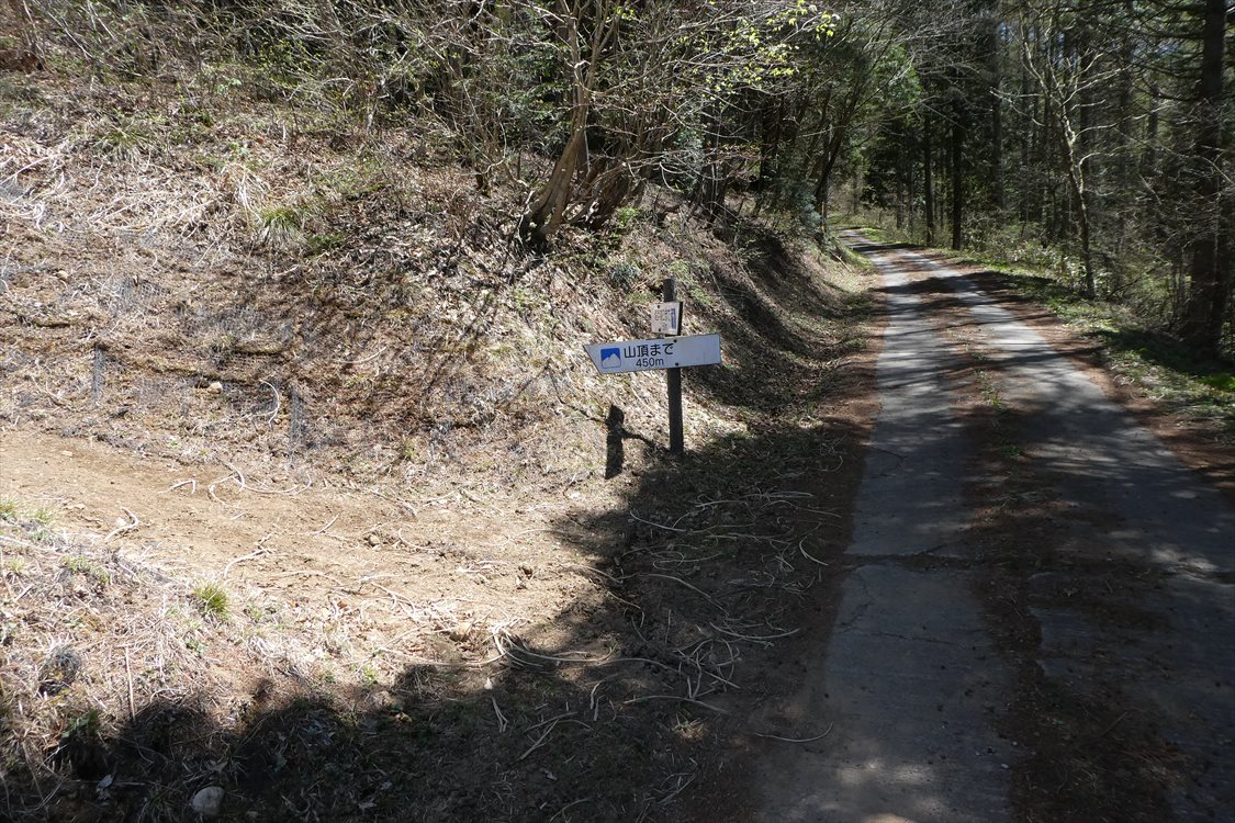 山頂まで820m ここで山頂向かいの車道(コンクリート道)に合流/遊歩道は左側 |