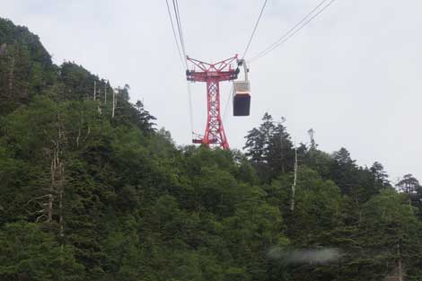 先ずは稜線上の極楽平を目指して登山開始! | 眼下にRW山頂駅 | |||
