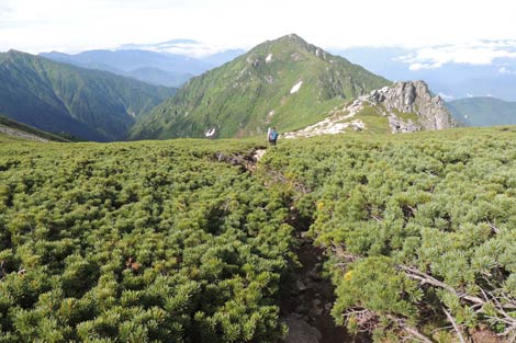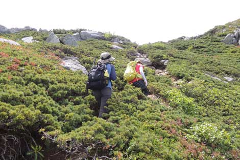 胸の高さまであるハイマツと悪戦苦闘しながら鉄プレート地点を目指す | ||||