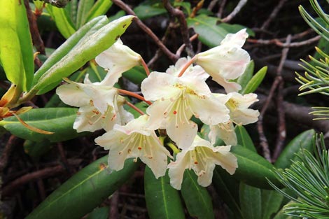 稜線北側の岩稜 | キバナシャクナゲ | |||