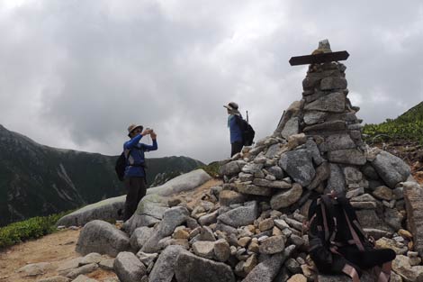 鞍部通過後の岩場登りが大変だったがよくぞここまで | ケルン・遭難碑 「神よ護り給え、白き高みへ憧れる若者を」 |