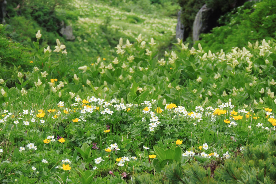コバイケイソウ・ハクサンイチゲ・ハクサンチドリ・シナノキンバイ | ||||