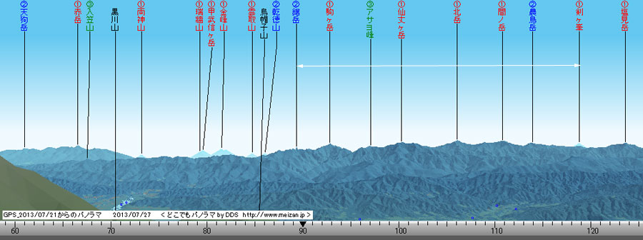 雲海の上に富士山や南アルプスの名峰がそろい踏み/下段パノラマ図解参照 | ||||