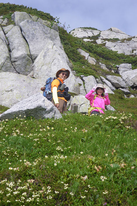チングルマ花道 | 写真では分かり難いが結構スリリングな岩頭 (^O^)v | |||
