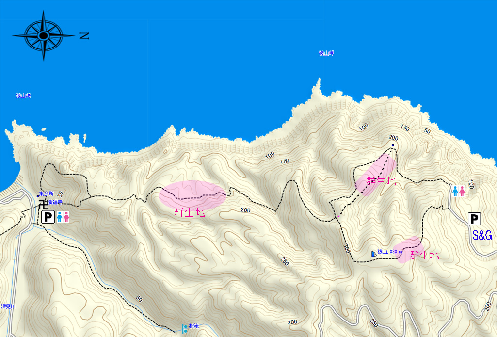 山頂分岐点(G地点)から深見群生地(I地点)へ下る |
