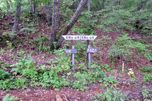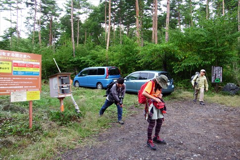 石尊山登山口駐車場(トイレ・水なし)約5台 登山届けBOXあり