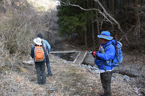 丸太橋・登山道入り口 | 不動沢に沿って登山道が延びる1 | |||