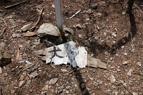 Tanmaさんの指先 山頂標らしいが文字が消えていました |
