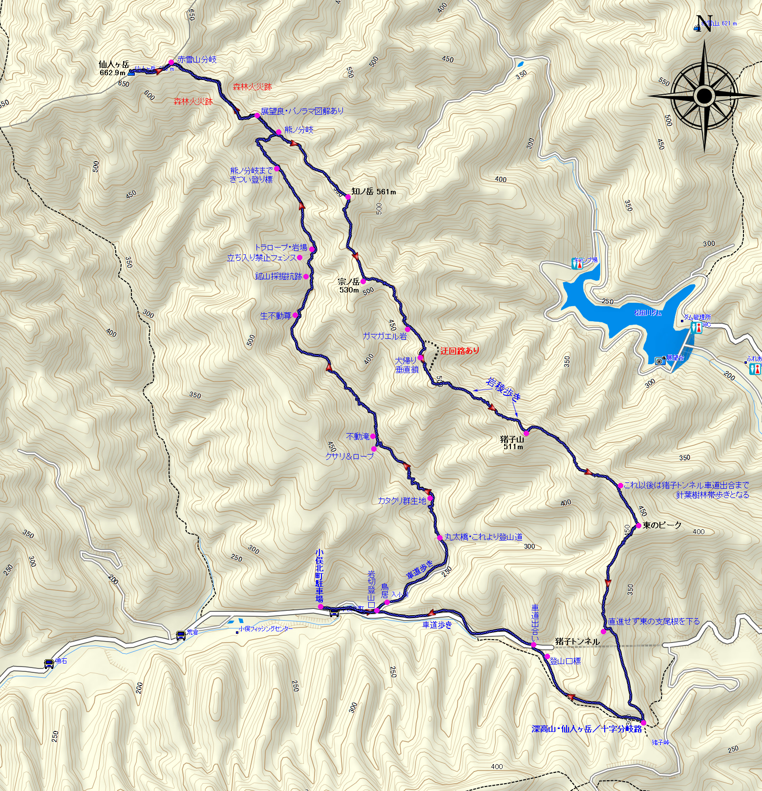 仙人ヶ岳・周遊ルートMAP | ||||