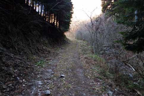 前方左カーブ先で林道終点 | 林道終点・丸太橋@ | |||