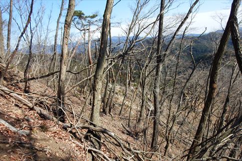 熊ノ分岐点・山頂まで20分 | 森林火災の爪痕が残る稜線 | |||