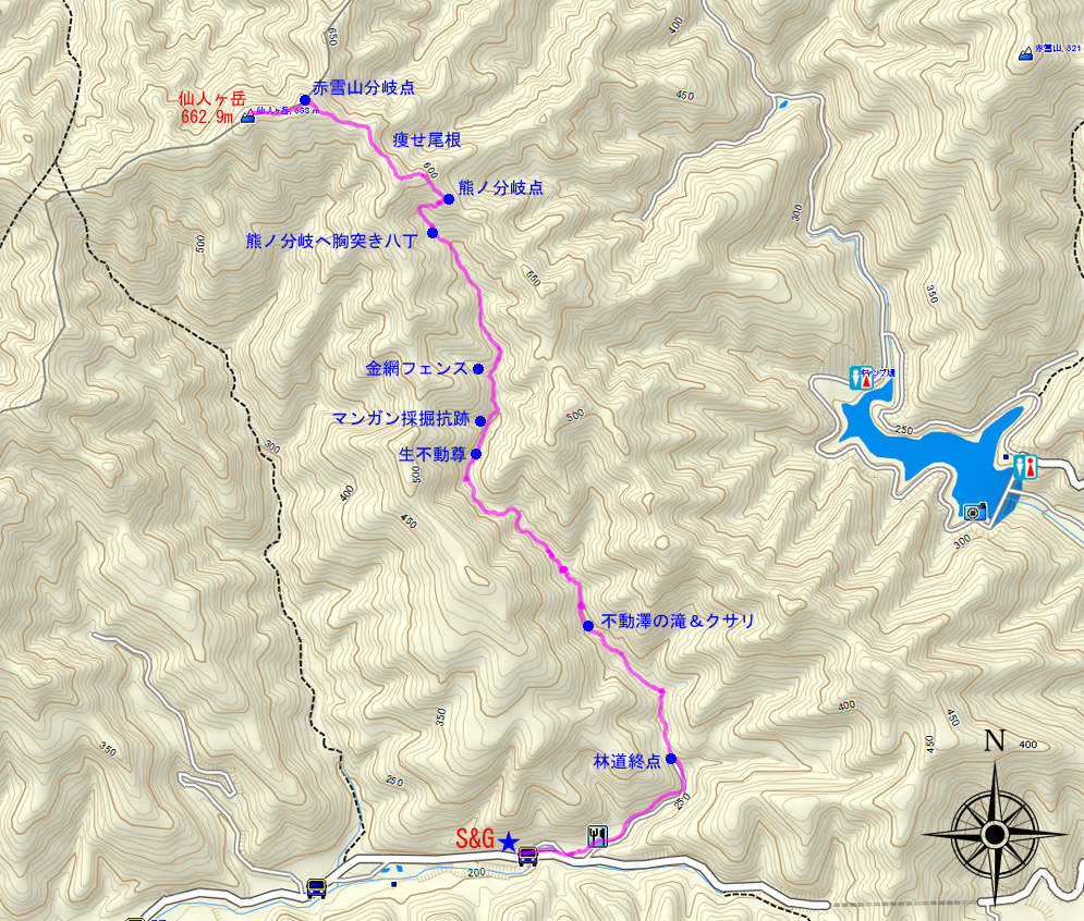 赤雪山分岐点 仙人ヶ岳山頂まで0.3キロ | ||||