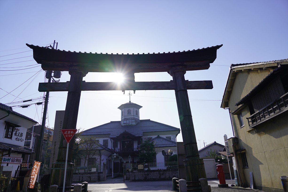 日牟禮八幡宮大鳥居&白雲館 | ||||