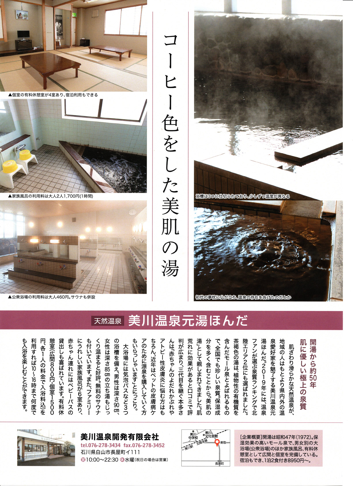 本日2湯目 (^O^)v 美川温泉元湯ほんだ TEL 076-278-3434 10:00−22:30 水曜定休 |