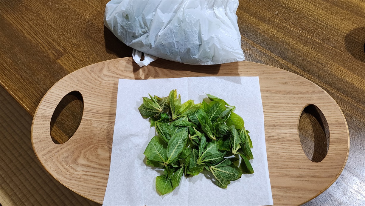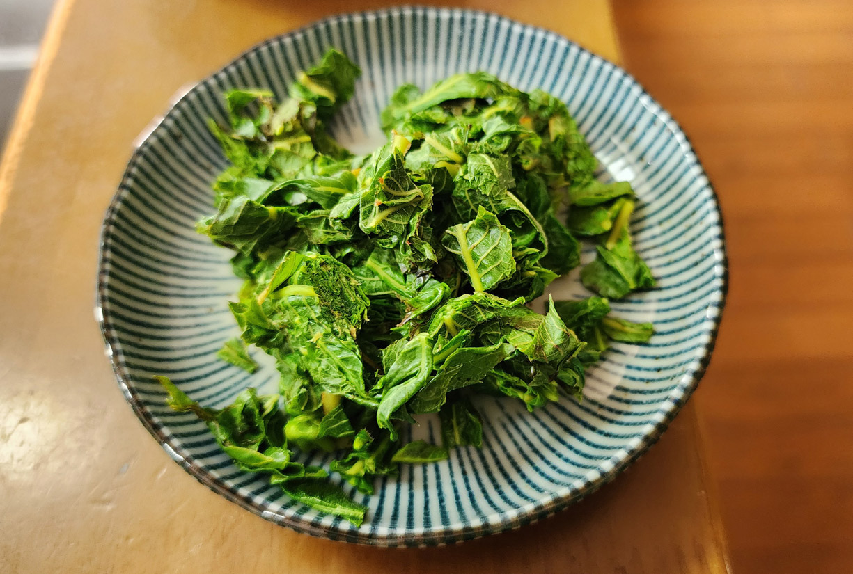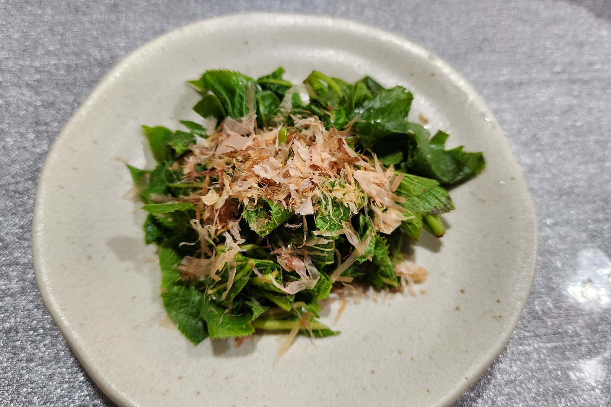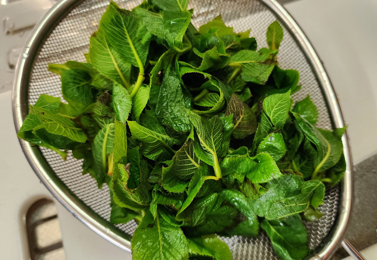 茹でたリョウブのおひたし