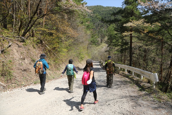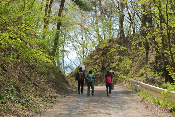 林道歩きで下山 |