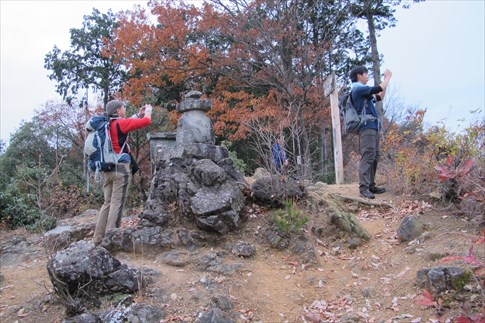 笠山神社で休憩後、笠山標柱まで戻って記念撮影 |
