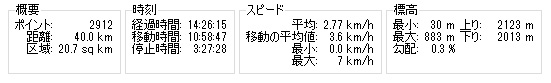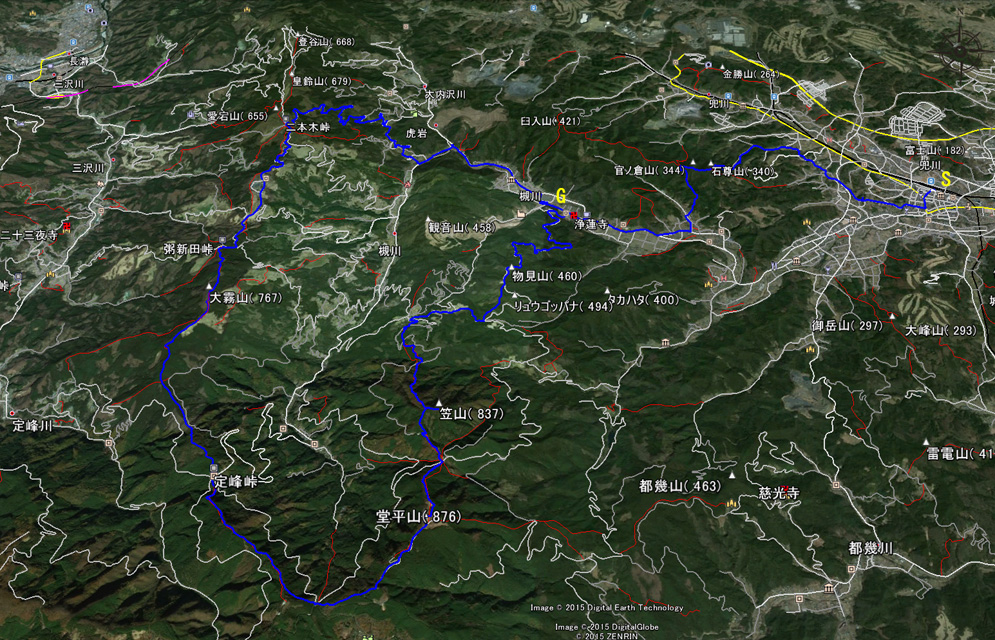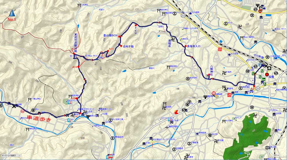小川町駅標高/91M 標高差/785M 上り累積/2247M 総歩行距離/39954M |