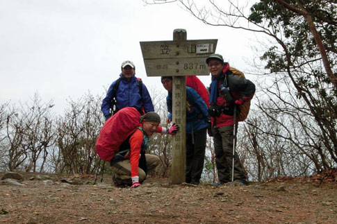 笠山神社で休憩後、笠山標柱まで戻って記念撮影