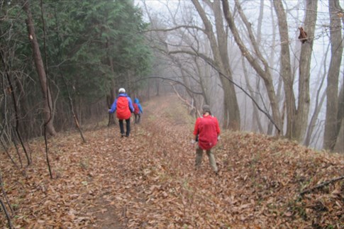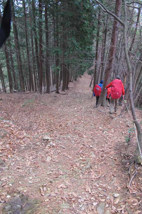 粥新田峠に向けて尾根筋を歩く |