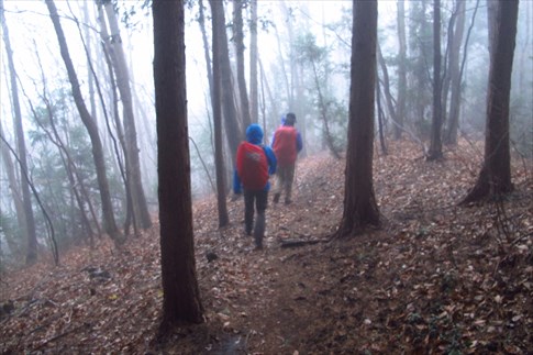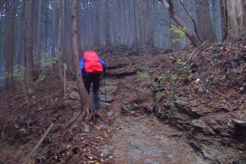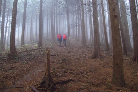 名前(大霧山)の如く霧に包まれる登山道 |